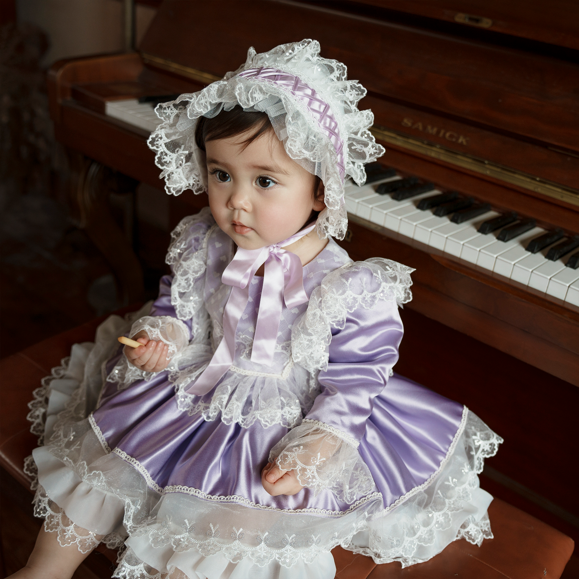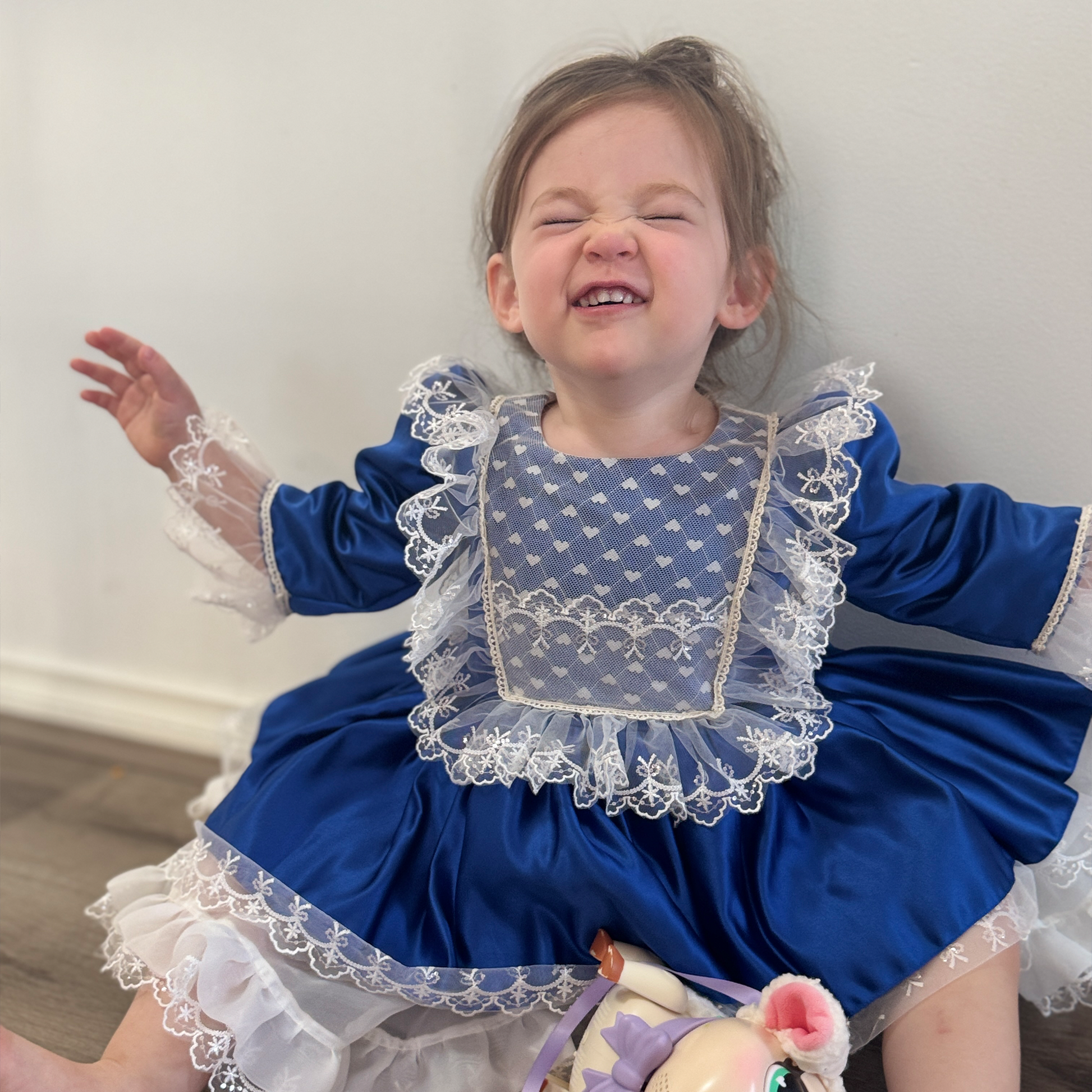 Hanakimi Girls' Dreamy Two-Tone Satin Flower Girl Dress